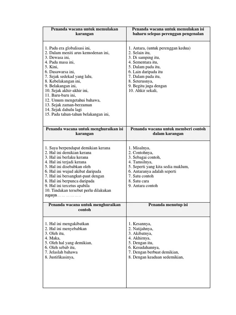 Penanda wacana bahasa inggeris dalam essay . Contextual translation of penanda wacana bahasa inglish into english. Contextual translation of contoh penanda wacana bahasa eng into english. Penanda wacana dalam bahasa inggeris. Yang demikian itu adalah perbuatan fasik. Okay, many people who learn english as their secondary language struggle to use penanda wacana (or discourse · cause and effect: List of discourse markers penanda .